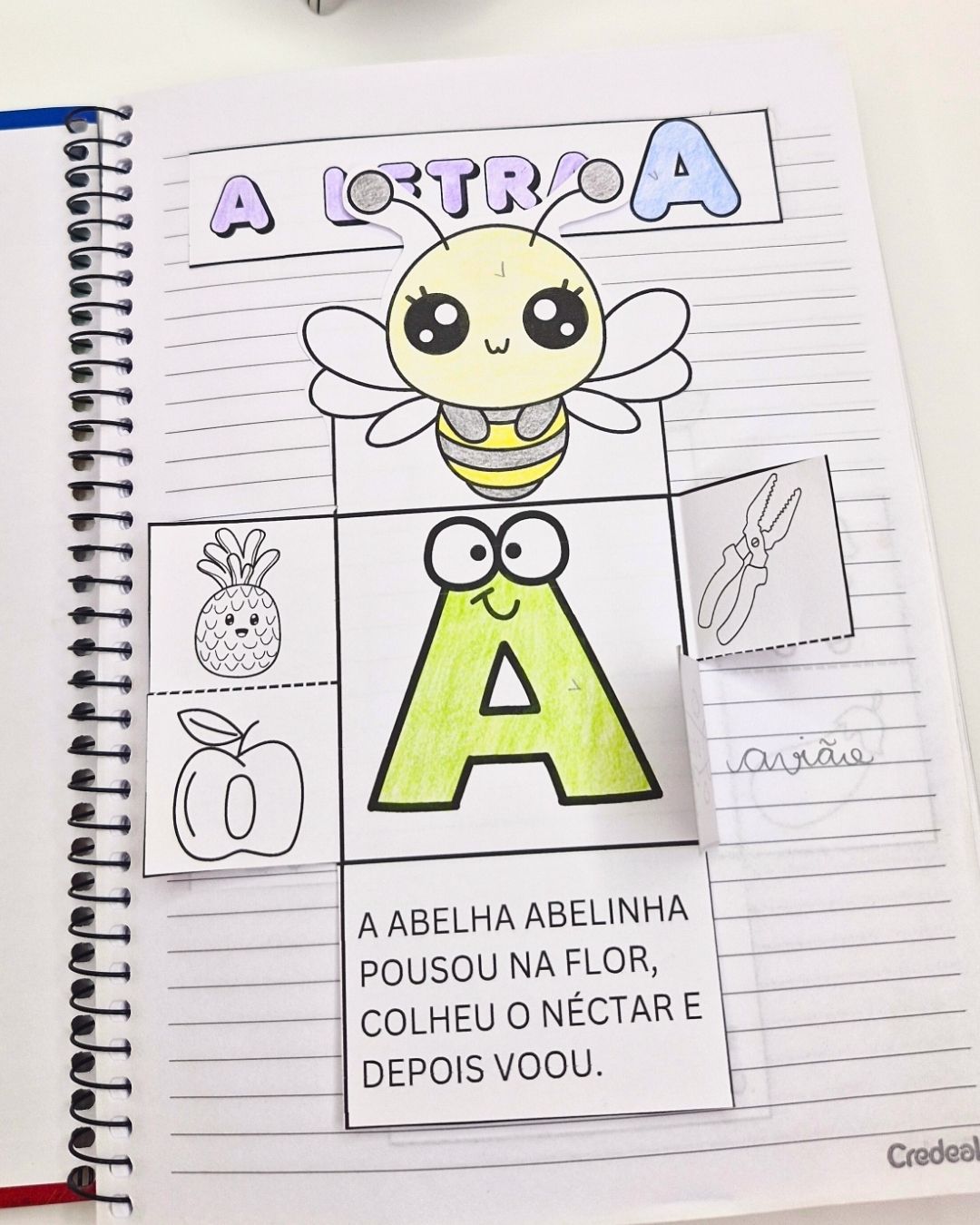 Um arquivo em PDF com páginas lúdicas para cada letra do alfabeto, pensado para ajudar a criança a reconhecer letras, ampliar vocabulário e escrever palavras de forma leve.